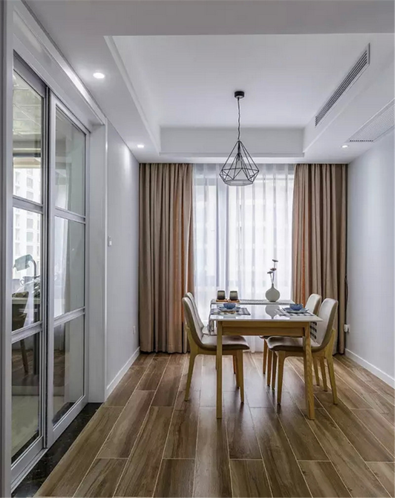 | 案例說明 | 客廳設(shè)計(jì)講究的是簡約、穩(wěn)重,深色的電視柜、淺色的茶幾,沙發(fā),餐桌使得整個(gè)空間即穩(wěn)重又清新,布藝的沙發(fā)為空間增添溫暖簡潔干凈的氣息,沙發(fā)背靠窗戶,光照也使空間看起來更干凈,清新大方,富有韻律,運(yùn)用了許多相框做了一面照片墻在餐廳墻,戶主可以把具有回憶的照片放進(jìn)去,更是增添些許溫馨。臥室也采用和客廳、餐廳一樣簡單的色系床,使整個(gè)設(shè)計(jì)更加協(xié)調(diào)。 | ||